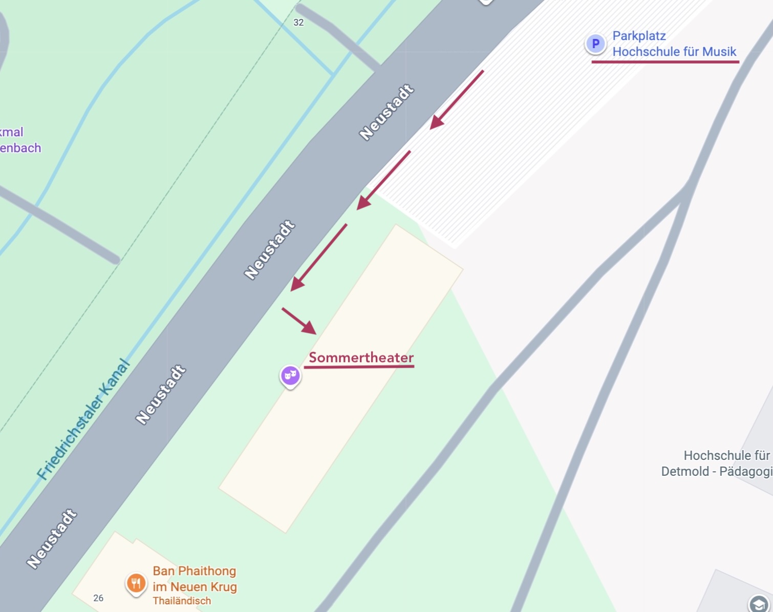 Für alle, die mit dem Auto zu uns kommen, sind wir aus Richtung Innenstadt erreichbar. Der Parkplatz der Hochschule für Musik kann ausschließlich von dort aus angefahren werden.